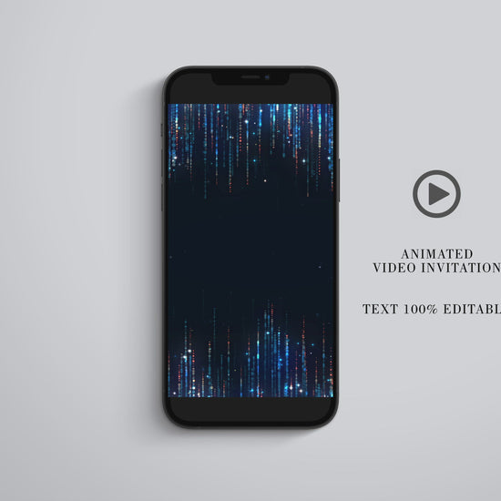 Animated Glitter Wedding Invitation, Video Wedding Invite, Gold Wedding Glitter Curtain Navy