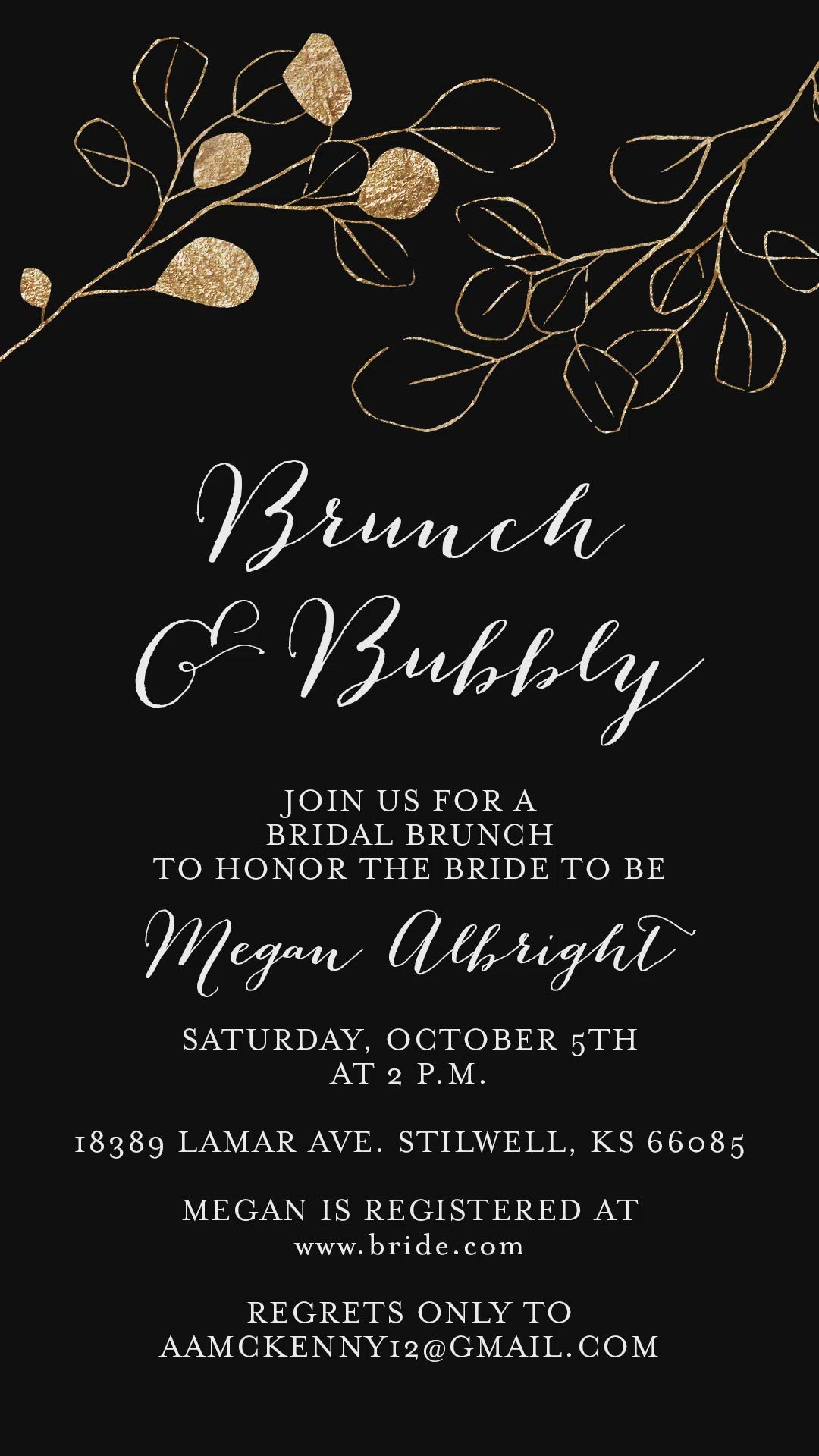 Bridal Shower Geometric Video Invitation, Mp4 Invites, Animated Gold Invitation, Brunch and Bubbly Invite