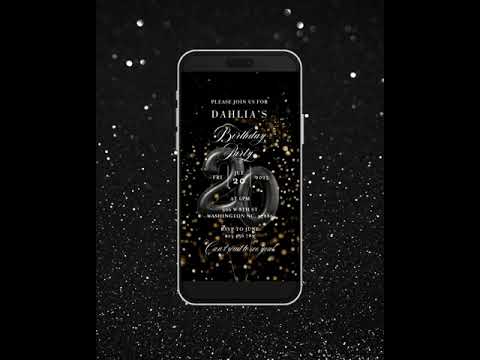 Digital birthday dinner invitation,women birthday invitation Party, Animated Black and Gold Balloons Birthday video Invite,Editable Template