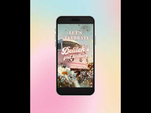 Editable Groovy One baby birthday video invitation with music, Animated Hippie Party Template, One groovy baby first birthday