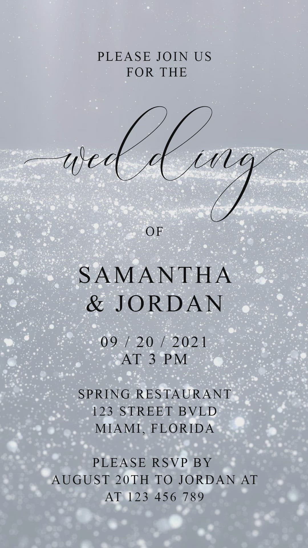 Instant Download Silver Glitter Wedding Video Evite, Electronic Invite, Wedding Video Invitation, Animated Invitation
