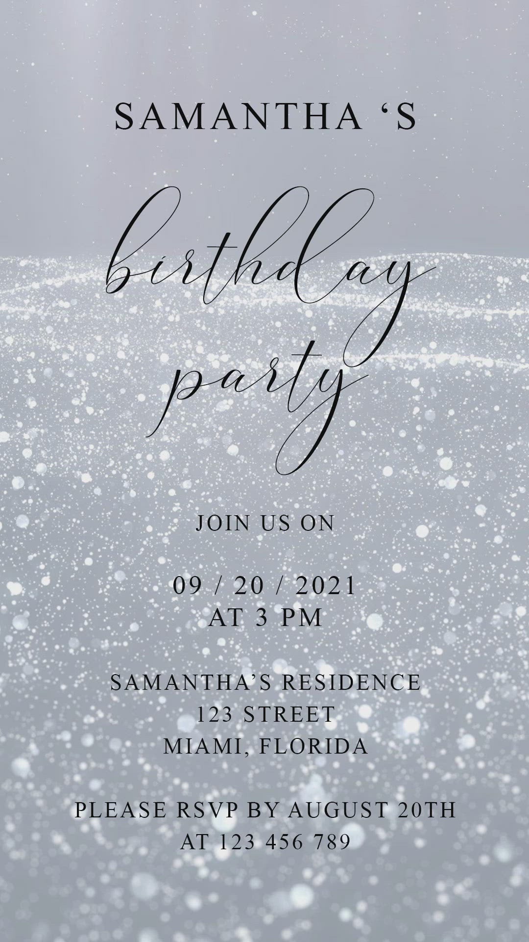 Instant Download Silver Glitter Birthday Video Evite, Electronic Invite, Birthday Video Invitation, Animated Invitation