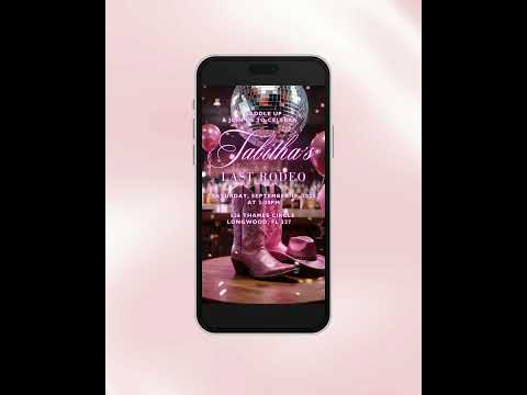 Last Rodeo Bachelorette Video Invite Template, Nashville Bachelorette Weekend Invite Template, Disco Cowgirl Bachelorette Pink Animated